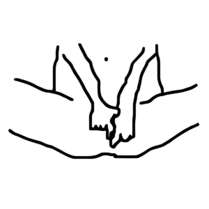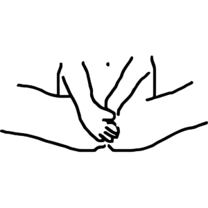 Variation: Man kann noch die Daumen hinzu nehmen oder noch mehr Finger und die Schamlippen ganz gezielt massieren.